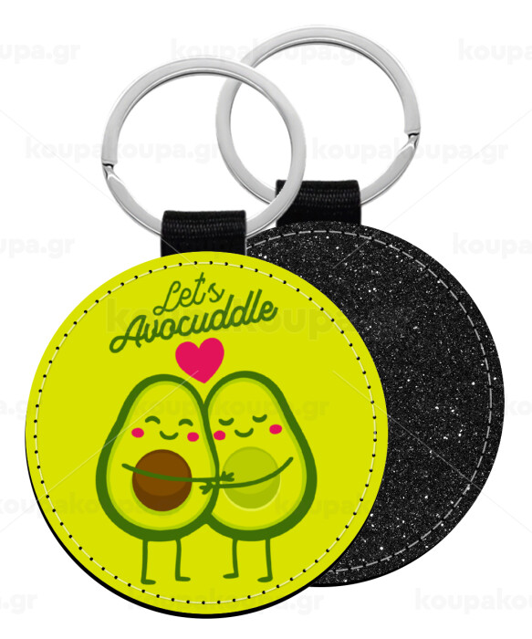 Let's avocuddle, Μπρελόκ Δερματίνη, στρογγυλό ΜΑΥΡΟ (5cm)
