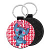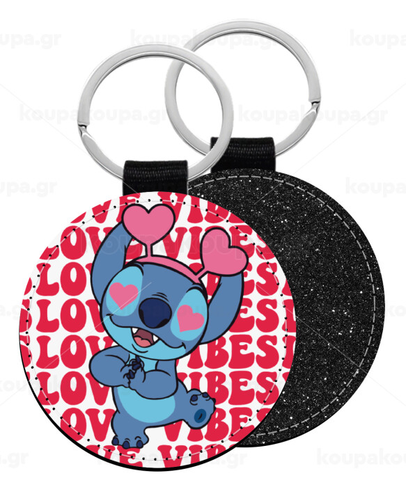 Lilo & Stitch Love vibes, Μπρελόκ Δερματίνη, στρογγυλό ΜΑΥΡΟ (5cm)