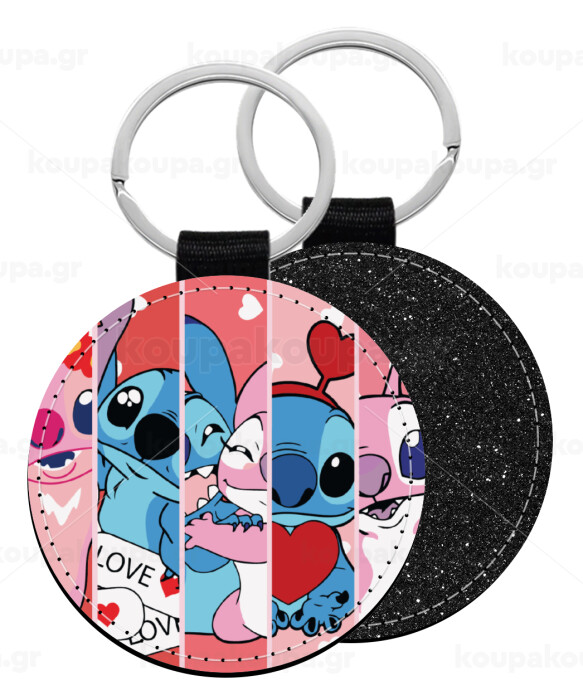Lilo & Stitch Love, Μπρελόκ Δερματίνη, στρογγυλό ΜΑΥΡΟ (5cm)