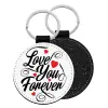 Love you forever, Μπρελόκ Δερματίνη, στρογγυλό ΜΑΥΡΟ (5cm)