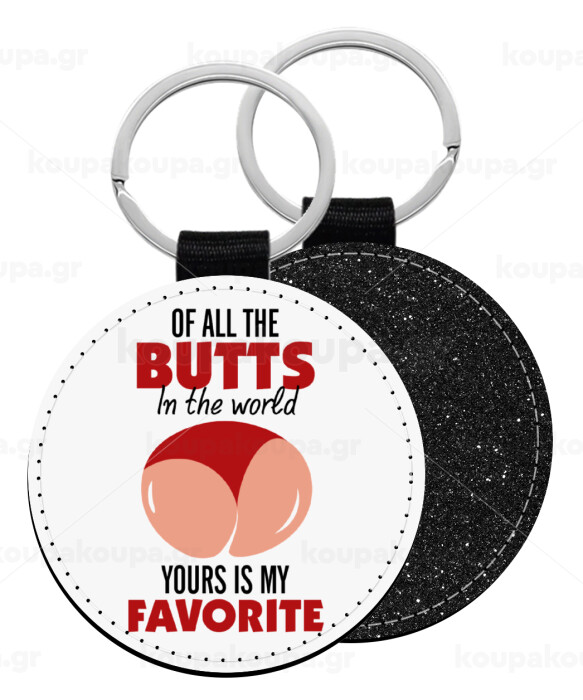 Of all the Butts in the world, your's is my favorite, Μπρελόκ Δερματίνη, στρογγυλό ΜΑΥΡΟ (5cm)