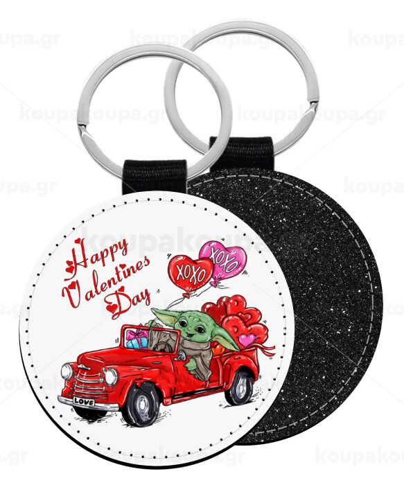 Yoda, happy valentines day (xoxo), Μπρελόκ Δερματίνη, στρογγυλό ΜΑΥΡΟ (5cm)