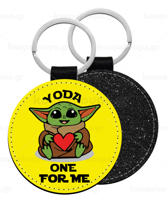 Yoda, one for me , Μπρελόκ Δερματίνη, στρογγυλό ΜΑΥΡΟ (5cm)