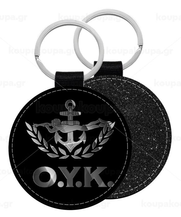 Ο.Υ.Κ., Μπρελόκ Δερματίνη, στρογγυλό ΜΑΥΡΟ (5cm)