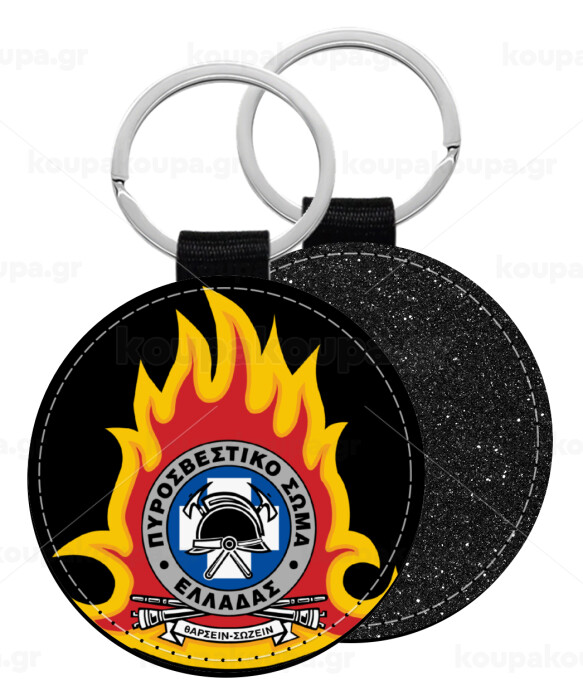Πυροσβεστικό σώμα Ελλάδος σκούρο, Μπρελόκ Δερματίνη, στρογγυλό ΜΑΥΡΟ (5cm)