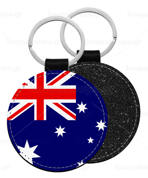 Australia flag, Μπρελόκ Δερματίνη, στρογγυλό ΜΑΥΡΟ (5cm)