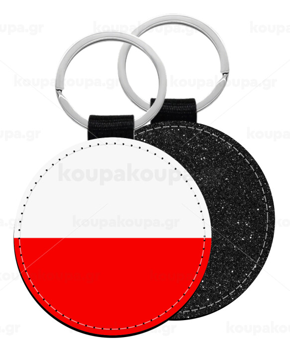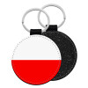 Poland flag, Μπρελόκ Δερματίνη, στρογγυλό ΜΑΥΡΟ (5cm)