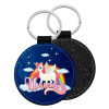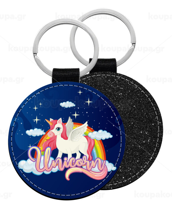 Μονόκερος, Μπρελόκ Δερματίνη, στρογγυλό ΜΑΥΡΟ (5cm)