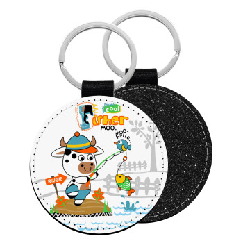Ο μικρός ψαράς, Μπρελόκ Δερματίνη, στρογγυλό ΜΑΥΡΟ (5cm)