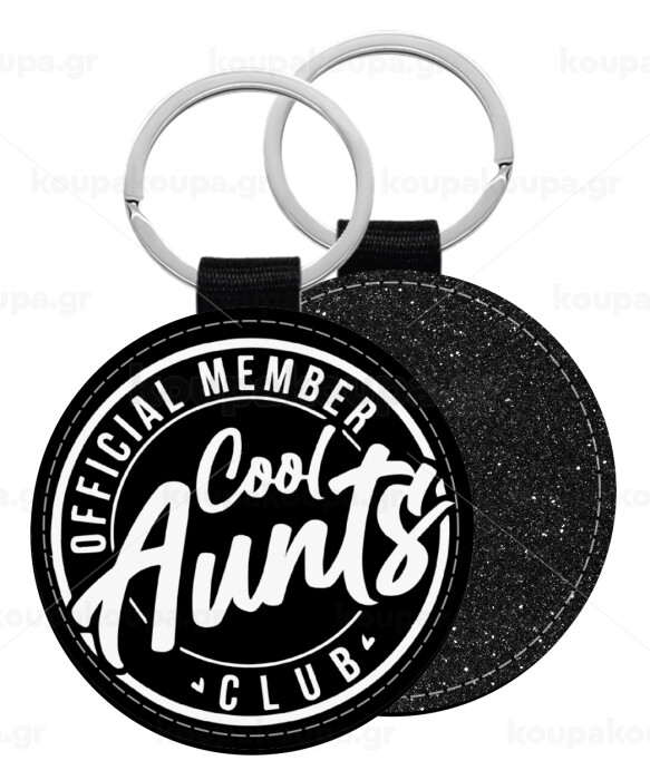 Cool Aunts club, Μπρελόκ Δερματίνη, στρογγυλό ΜΑΥΡΟ (5cm)