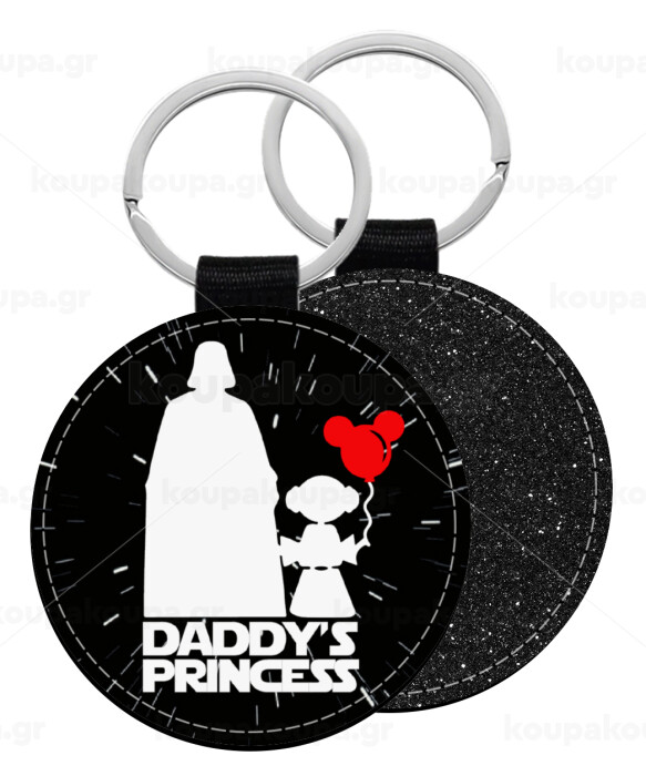 Daddy's princess, Μπρελόκ Δερματίνη, στρογγυλό ΜΑΥΡΟ (5cm)