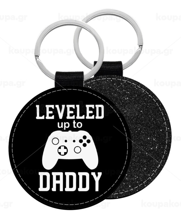 Leveled to Daddy, Μπρελόκ Δερματίνη, στρογγυλό ΜΑΥΡΟ (5cm)