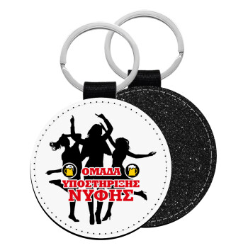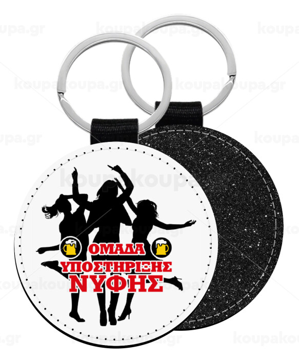 Bachelor Ομάδα υποστήριξης Νύφης, Μπρελόκ Δερματίνη, στρογγυλό ΜΑΥΡΟ (5cm)