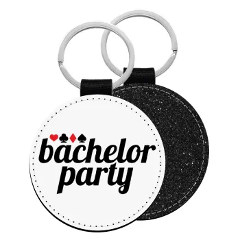 Bachelor party, Μπρελόκ Δερματίνη, στρογγυλό ΜΑΥΡΟ (5cm)