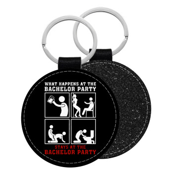 Mπρελόκ από δερματίνη με glitter στην μία πλευρά και στην άλλη δερματίνη μεγάλης αντοχής. Κρίκος ασφάλειας για τα κλειδιά.