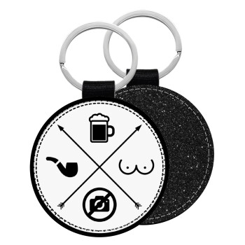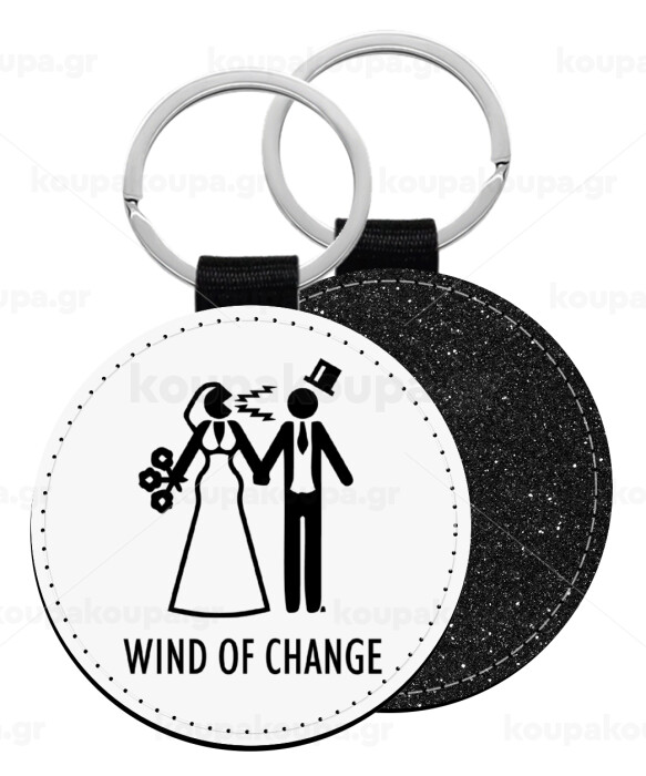 Couple Wind of Change, Μπρελόκ Δερματίνη, στρογγυλό ΜΑΥΡΟ (5cm)