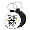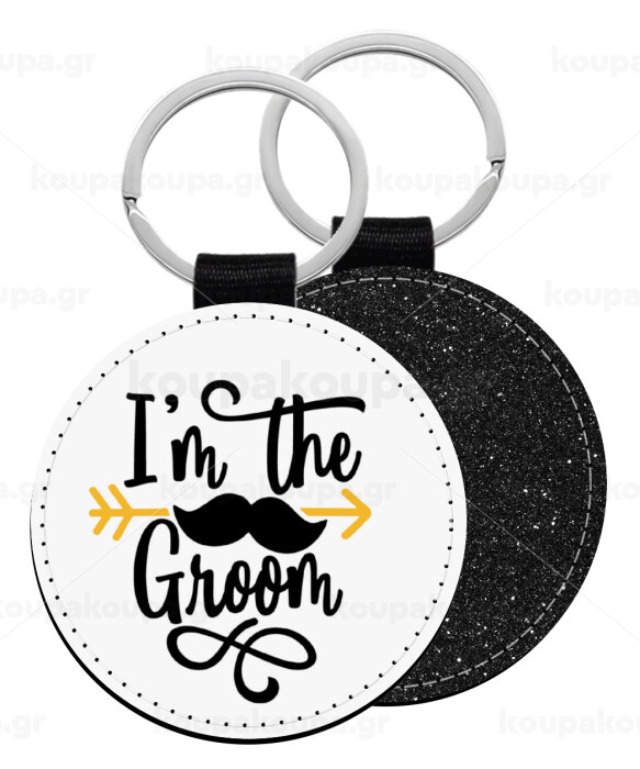 I'm the groom mustache, Μπρελόκ Δερματίνη, στρογγυλό ΜΑΥΡΟ (5cm)