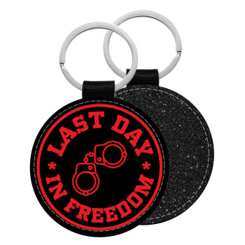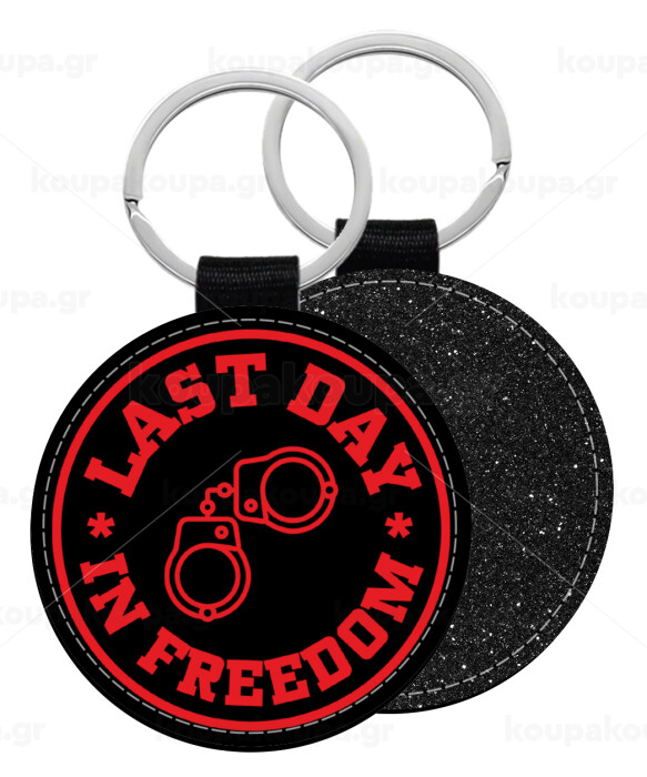 Last day freedom, Μπρελόκ Δερματίνη, στρογγυλό ΜΑΥΡΟ (5cm)