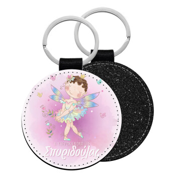 Mπρελόκ από δερματίνη με glitter στην μία πλευρά και στην άλλη δερματίνη μεγάλης αντοχής. Κρίκος ασφάλειας για τα κλειδιά.