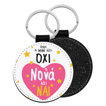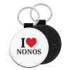 I Love ΝΟΝΟΣ, Μπρελόκ Δερματίνη, στρογγυλό ΜΑΥΡΟ (5cm)