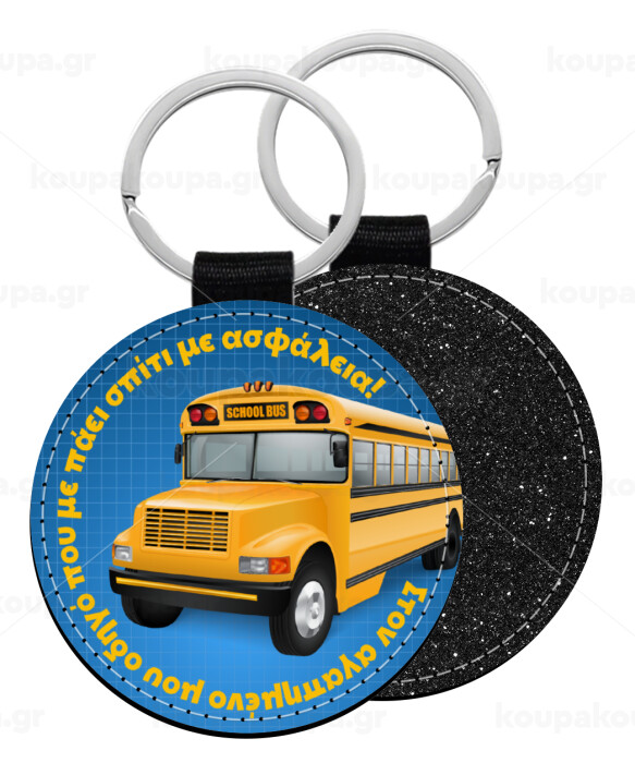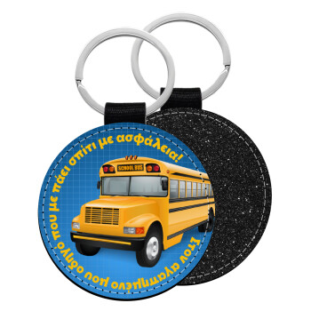 Στον αγαπημένο μου οδηγό σχολικού!, Μπρελόκ Δερματίνη, στρογγυλό ΜΑΥΡΟ (5cm)