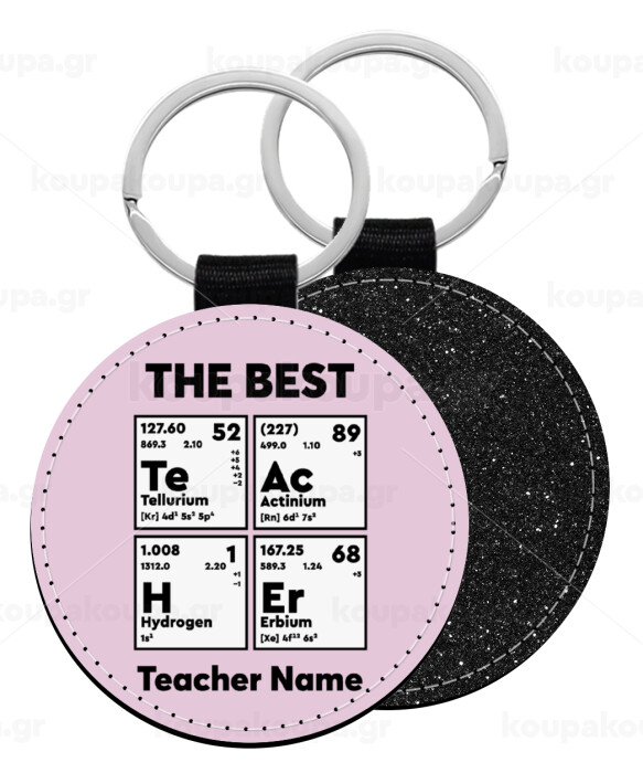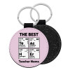 THE BEST Teacher chemical symbols, Μπρελόκ Δερματίνη, στρογγυλό ΜΑΥΡΟ (5cm)