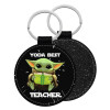 Yoda Best Teacher, Μπρελόκ Δερματίνη, στρογγυλό ΜΑΥΡΟ (5cm)