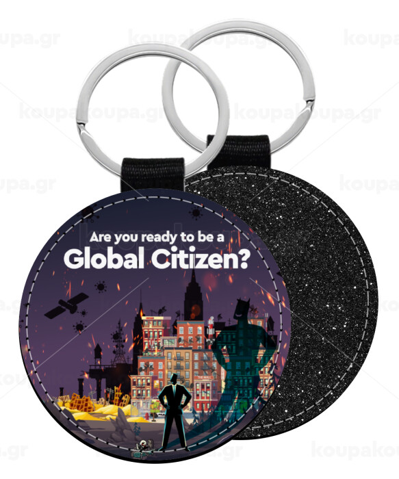 A global Citizen, Μπρελόκ Δερματίνη, στρογγυλό ΜΑΥΡΟ (5cm)