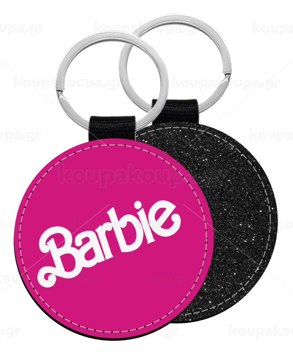 Barbie, Μπρελόκ Δερματίνη, στρογγυλό ΜΑΥΡΟ (5cm)