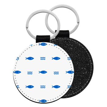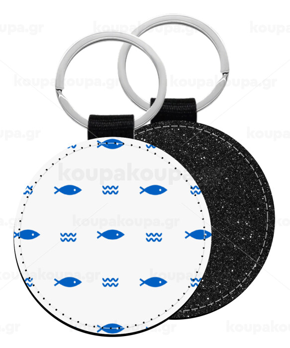 Ψαράκια, Μπρελόκ Δερματίνη, στρογγυλό ΜΑΥΡΟ (5cm)