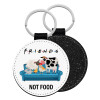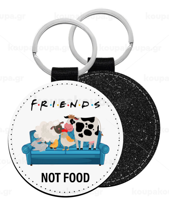 friends, not food, Μπρελόκ Δερματίνη, στρογγυλό ΜΑΥΡΟ (5cm)