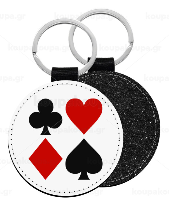 Τραπουλόχαρτα, Μπρελόκ Δερματίνη, στρογγυλό ΜΑΥΡΟ (5cm)