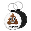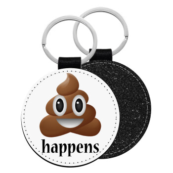 Shit Happens, Μπρελόκ Δερματίνη, στρογγυλό ΜΑΥΡΟ (5cm)
