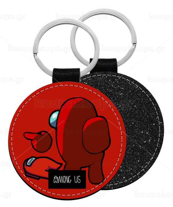 Among US i am impostor..., Μπρελόκ Δερματίνη, στρογγυλό ΜΑΥΡΟ (5cm)