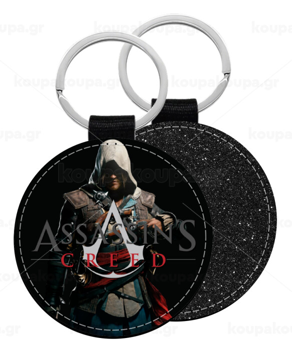 Assassin's Creed, Μπρελόκ Δερματίνη, στρογγυλό ΜΑΥΡΟ (5cm)