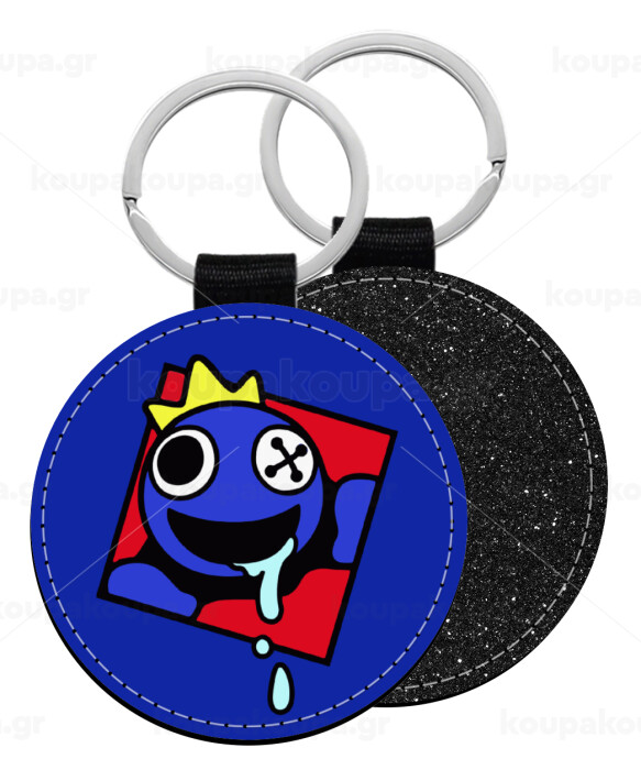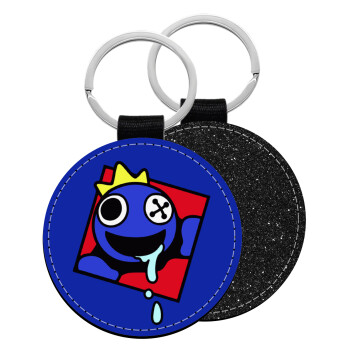 Blue, Rainbow friends, Μπρελόκ Δερματίνη, στρογγυλό ΜΑΥΡΟ (5cm)