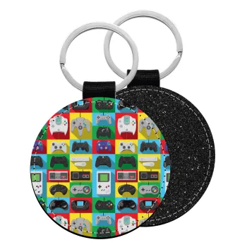 Gaming Controllers, Μπρελόκ Δερματίνη, στρογγυλό ΜΑΥΡΟ (5cm)