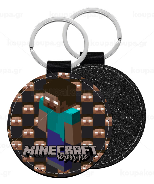 Minecraft herobrine, Μπρελόκ Δερματίνη, στρογγυλό ΜΑΥΡΟ (5cm)
