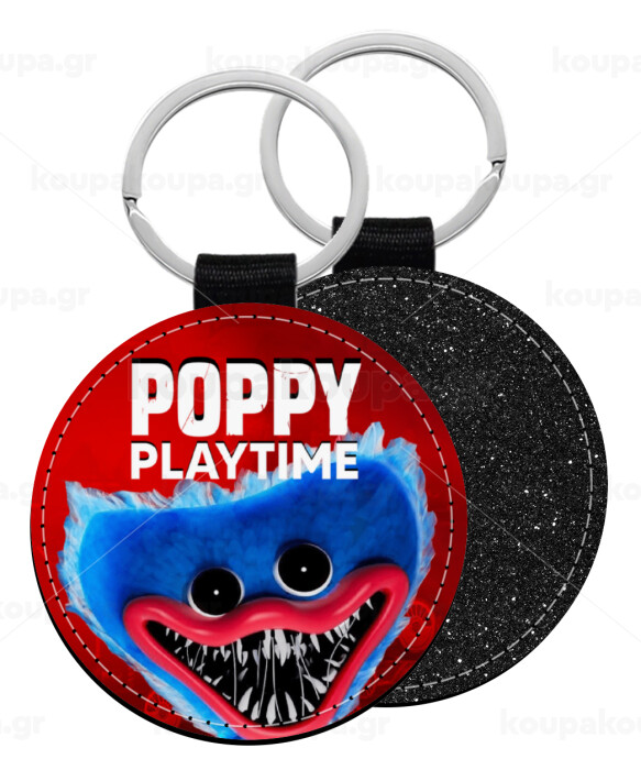 Poppy Playtime Huggy wuggy, Μπρελόκ Δερματίνη, στρογγυλό ΜΑΥΡΟ (5cm)