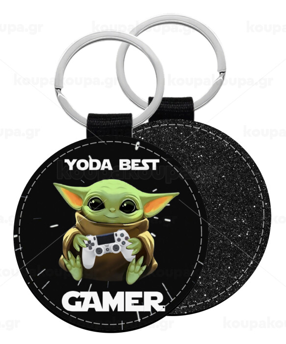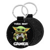 Yoda Best Gamer, Μπρελόκ Δερματίνη, στρογγυλό ΜΑΥΡΟ (5cm)