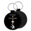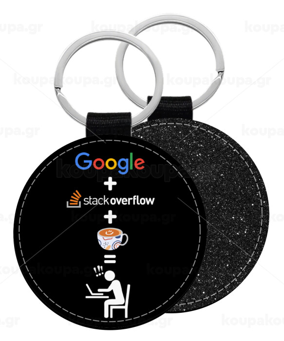 Google + Stack overflow + Coffee, Μπρελόκ Δερματίνη, στρογγυλό ΜΑΥΡΟ (5cm)