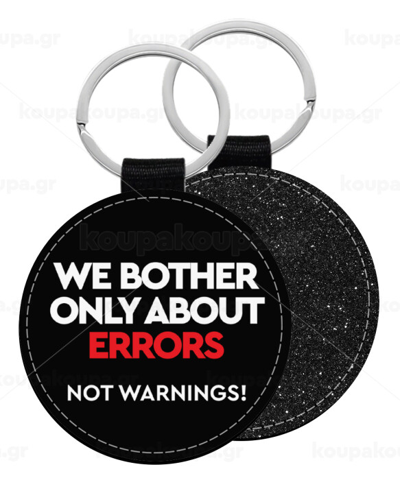 We bother only about errors, not warnings, Μπρελόκ Δερματίνη, στρογγυλό ΜΑΥΡΟ (5cm)