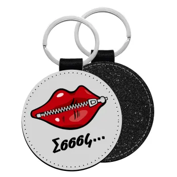 Σσσσς..., Μπρελόκ Δερματίνη, στρογγυλό ΜΑΥΡΟ (5cm)