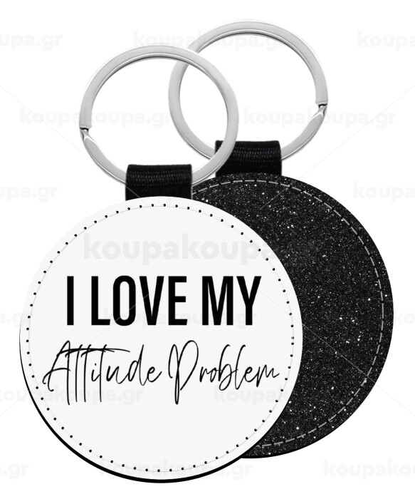 I love my attitude problem, Μπρελόκ Δερματίνη, στρογγυλό ΜΑΥΡΟ (5cm)