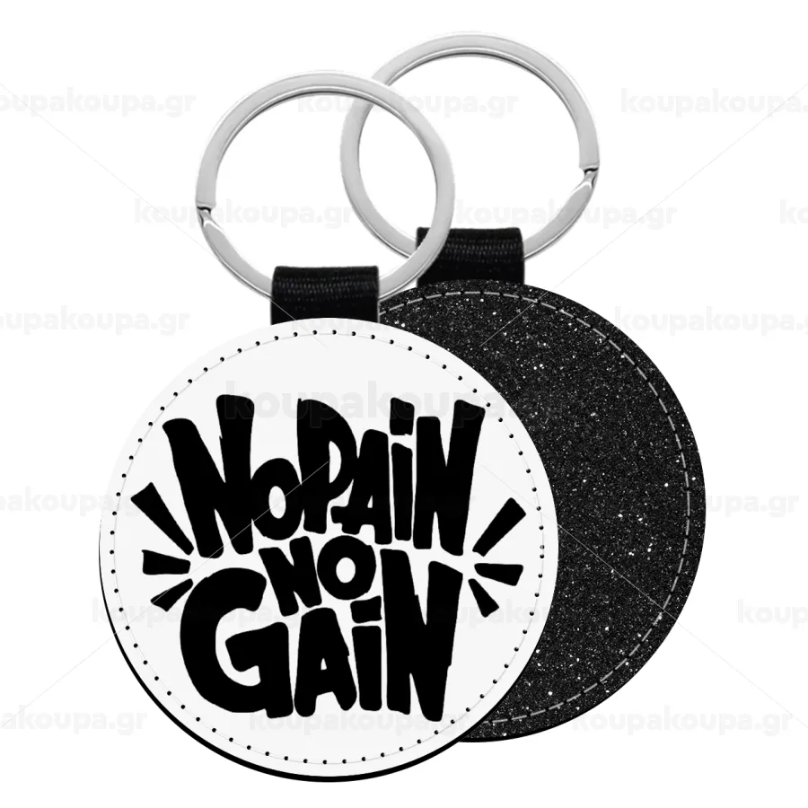 No pain no gain, Μπρελόκ Δερματίνη, στρογγυλό ΜΑΥΡΟ (5cm)