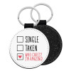 Single, Taken, Who cares i'm amazing, Μπρελόκ Δερματίνη, στρογγυλό ΜΑΥΡΟ (5cm)