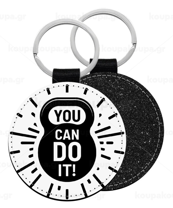 You can do it, Μπρελόκ Δερματίνη, στρογγυλό ΜΑΥΡΟ (5cm)
