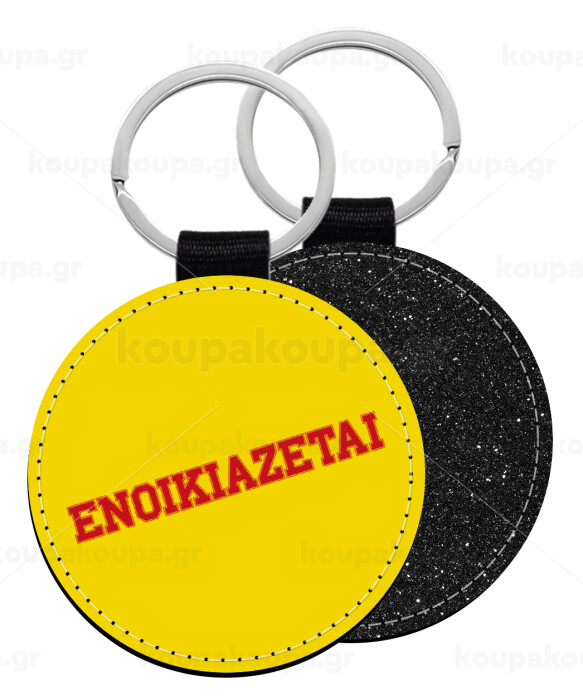 ΕΝΟΙΚΙΑΖΕΤΑΙ, Μπρελόκ Δερματίνη, στρογγυλό ΜΑΥΡΟ (5cm)