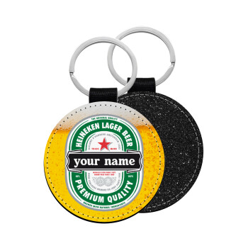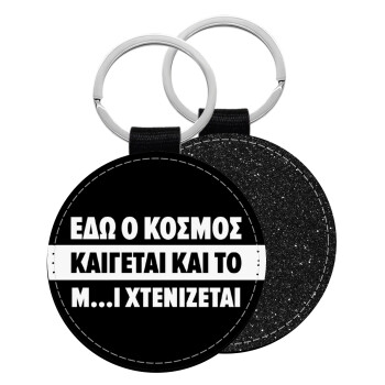 Mπρελόκ από δερματίνη με glitter στην μία πλευρά και στην άλλη δερματίνη μεγάλης αντοχής. Κρίκος ασφάλειας για τα κλειδιά.