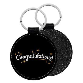 Congratulations, Μπρελόκ Δερματίνη, στρογγυλό ΜΑΥΡΟ (5cm)